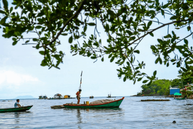 Tàu dừng lại những rạng ngoài khơi nơi có rất nhiều cá để đoàn thỏa sức câu cá. Dưới sự hướng dẫn của ngư dân địa phương và sự phong phú của các loài cá đảm bảo mọi người sẽ dễ dàng câu được.